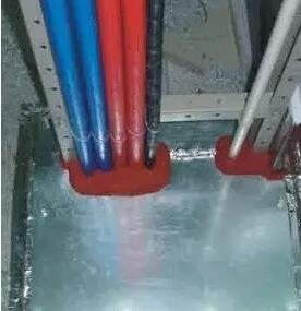 3、電纜及絕緣電線穿鋼管布線時,應(yīng)在樓層間預(yù)埋鋼管,布線后應(yīng)在兩端鋼管管口空隙用防火堵料隔離。